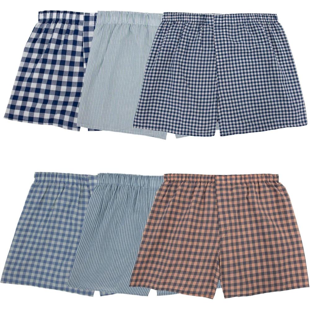 Fruit of the Loom mens Men’s Tag Free Woven Boxer Shorts, Relaxed Fit, Moisture Wicking, Assorted Color Multipacks(Assorted Gingham Stripe)